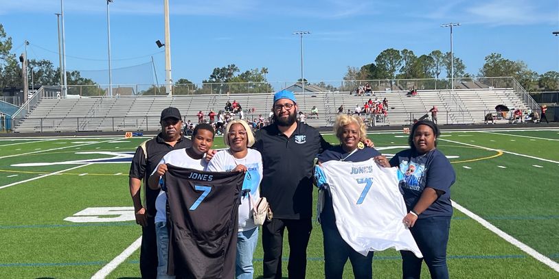 Coach Eddy presenting the family of Chris Jones with Personalized jerseys to honor him. He will forever be remembered for what he gave to the sport and those that he loved. LLCJ